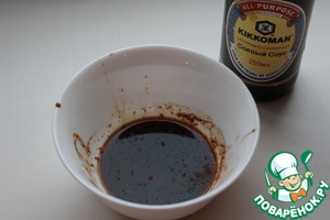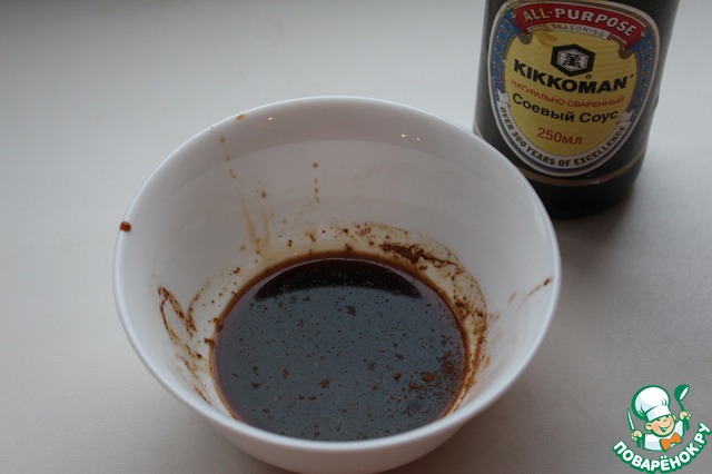 Сделать маринад: смешать водку, соевый соус и специи. |