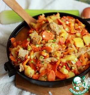 Готовое рагу можно посыпать рубленой зеленью и подавать к столу, а лучше дать немного настояться и только потом "отведать". Приятного аппетита!