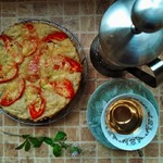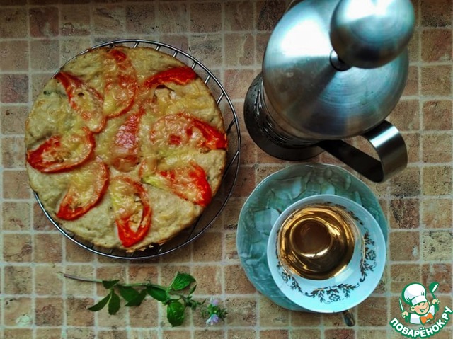 Не знала, как назвать - пирогом или лепёшкой? Всё-таки, лепёшка с припёком, овощная. Лепёшка родилась спонтанно. В холодильнике была простокваша и кабачок, помидор, зелень. Добавила соевый соус, тесто стало красивого цвета, да и соль не нужно было класть. Получилось очень вкусно, ярко, по-весеннему.