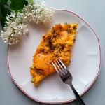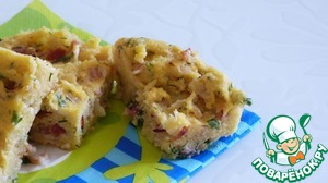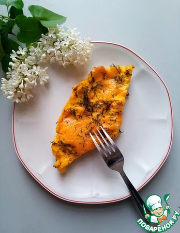 Нарезаем наш "пирог" на порции. Очень сытный завтрак готов. Угощайтесь.