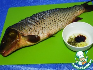 Готовим ложку растительного масла, 2 тертых зубчика чеснока, итальянские травки и стол ложку соевого соуса. Для смазывания кожи карпа. -