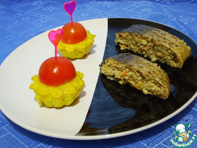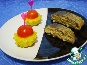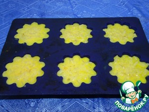 Пропитываем рис в формочках заливкой. Запекаем в духовке до золотистости.