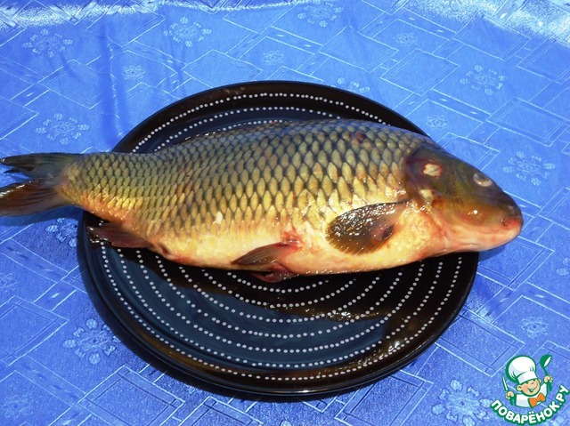 Вот такой карп на 1,5 кг готов к приготовлению блюда.
