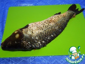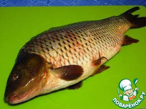 Карпа тщательно промоем и очистим от чешуи. Жабры вырежем.