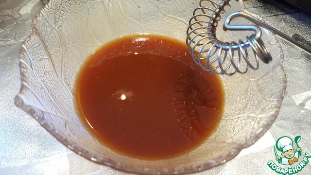 Смешиваем в равных долях соевый соус и масло для жарки. Я использовала оливковое масло.