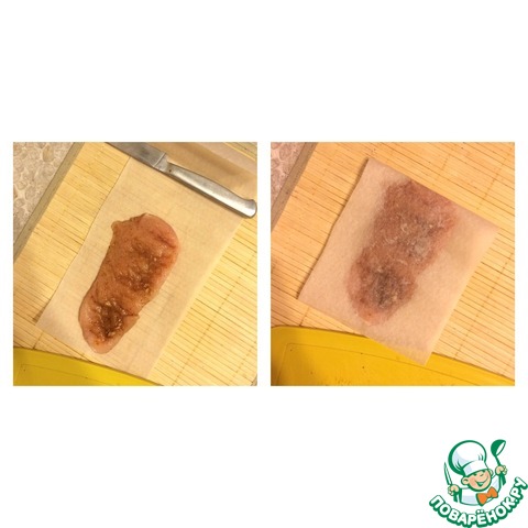 Филе выкладываем на бумагу, накрываем и плотно прижимаем