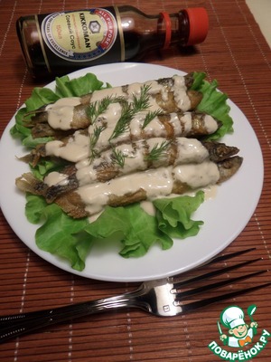 Подаем мойву с зеленью и соево-сметанным соусом.