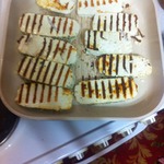 Сыр вынуть из маринада и обжарить на сковороде (жарила с добавлением масла и без него, и так, и так вкусно).
