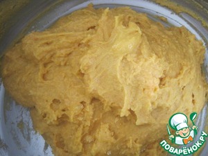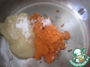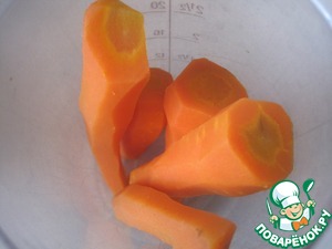 Отварную морковь измельчаем блендером до пюреобразного состояния.