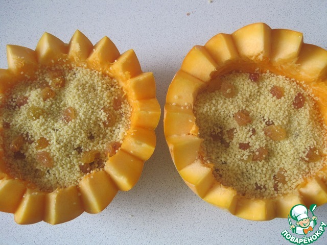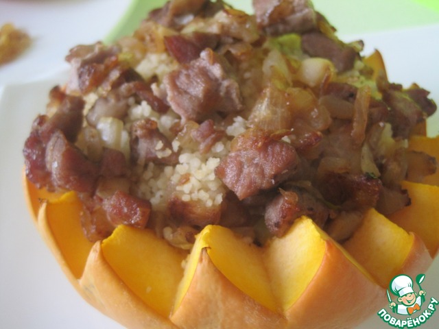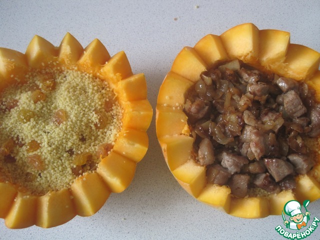 Рецепт «Кускус с мясом и изюмом в тыкве»: