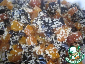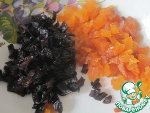 Курагу и чернослив промываем и нарезаем.