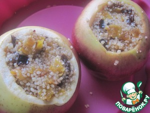 Запеченные фаршированные яблоки с сухофруктами и КУСКУСОМ, которые вкусны и в горячем и в холодном виде. Готовятся просто, быстро и очень вкусно, если подать с орехами, шоколадом и медом.