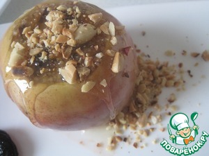 При подаче одно яблоко поливаем медом и посыпаем орехами.
