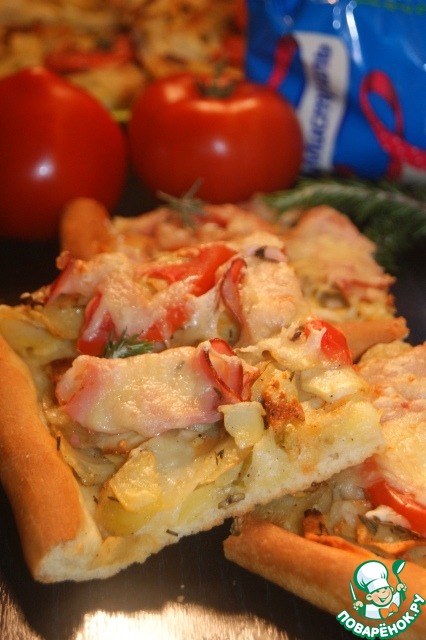 Эта пицца получилась из двух разных рецептов от двух МЕГА-ШЕФОВ кулинарии! Тесто от Джейми Оливера и идея с картофелем от Джима Лейхи. Ваша покорная слуга внесла маленькую отсебятину - дополнение к специям в картофеле и начинки для второй не постной половины. Заходите в гости и угощайтесь! Пицца получилась на славу - вкусная, с тоненьким тестом, ароматным картофелем и пикантными дополнениями!