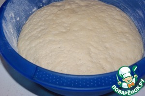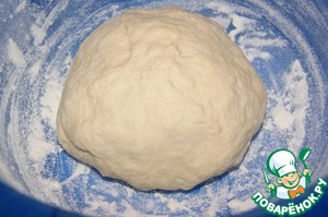 Тесто скатать в шарик и поместить в миску, присыпанную мукой, и поставить в теплое место. Тесто должно увеличиться в объеме в три раза.