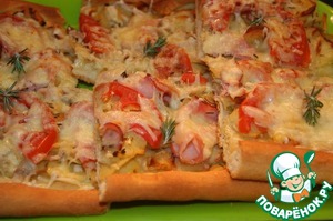 Поместить пиццу под гриль на 5 минут, чтобы расплавился сыр.