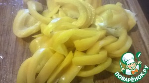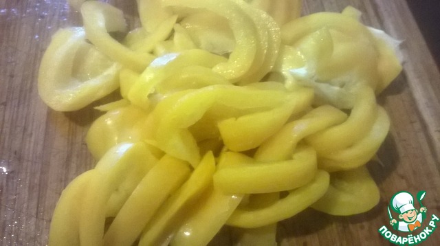 Добавить яблоки, перец и 1/2 стакана кипятка. Закрыть крышкой и тушить минут 10-15. -