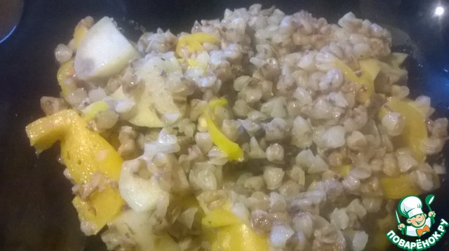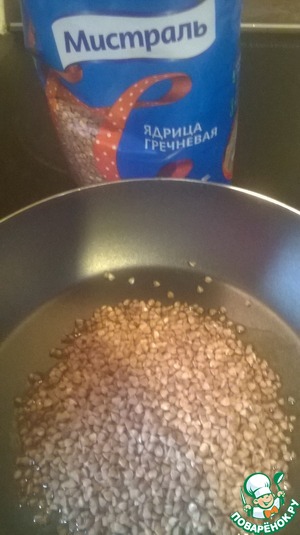 Обжарить гречку "Мистраль" (важно взять чистую и качественную крупу) на растительном масле минут 5-7.