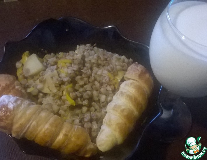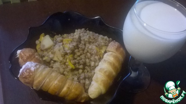 Рецепт «Гречка с яблоками и трубочками со сливочным кремом»: