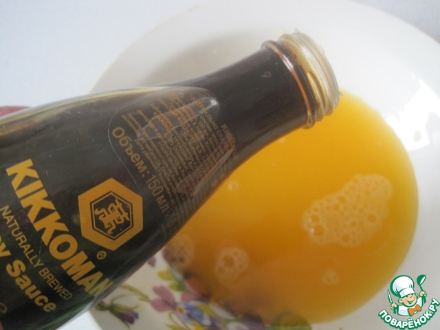 Сок апельсина смешиваем соевым соусом.