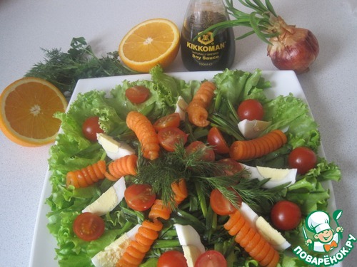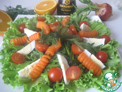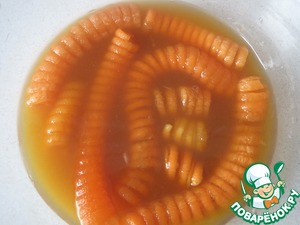Морковь оставляем на 30 мин в соке апельсина с соевым соусом.