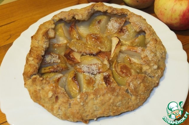 Присыпать яблоки сахаром, корицей и имбирем. Края теста завернуть внутрь, сформировав галету.
