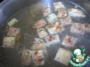 Для непостной добавки приготовим омлет. Куриное филе обжариваем с морковью