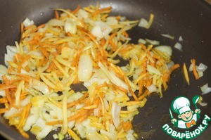 Морковь и лук очистить, помыть. Лук мелко нарезать, морковь натереть на крупной терке. Обжарить лук и морковь на подсолнечном масле до мягкости.