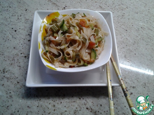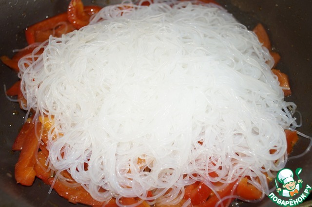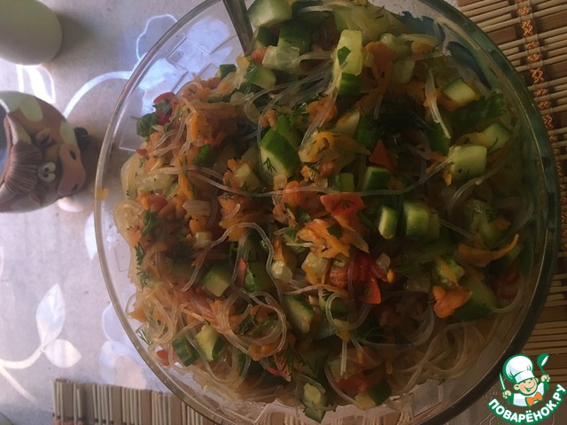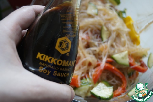 Рецепт «Теплый салат из фунчозы с овощами»: