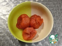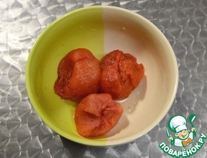 Три небольшие маринованные помидорки измельчаем и отправляем в перловку.