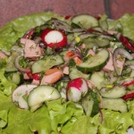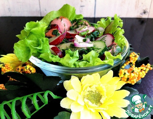 Спасибо за такой вкусный весенний салатик! Правда заменила листья салата, на зеленую часть китайской капусты. Получилось очень вкусно! Правда фотка почему то кверх ногами, но все равно вкусно