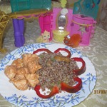 Рецепт «Гречка с грибами и куриными шашлычками»: