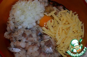 всё добавляем к рубленой рыбе, разбиваем яйцо... -