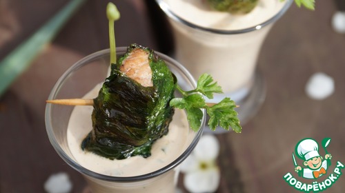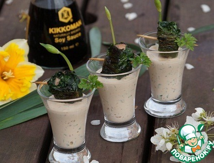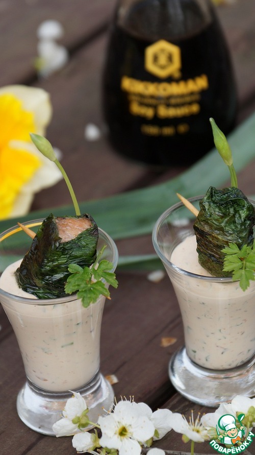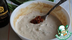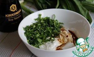 В миске смешиваем нарезанную черемшу, сметану и соевый соус.