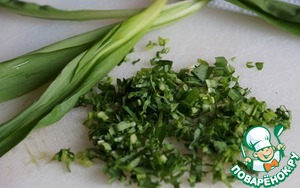 Для соуса нарежем пол пучка (количество произвольное и зависит от вашего вкуса, мне нравится побольше) черемши.