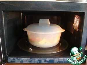• Накрыла крышкой и поставила в СВЧ на 12 минут при мощности 600.