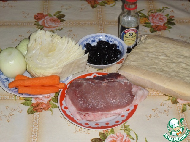 Ингредиенты для «Пирог с капустой, свининой и черносливом»: