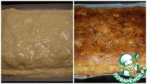 Смазываем желтком, посыпаем кунжутом. Ставим в разогретую духовку. Выпекаем 30 минут при 160-180 градусах.
