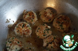 Обжарить фрикадельки в глубокой сковороде на растительном масле, до образования легкой, румяной корочки, с двух сторон.