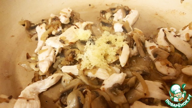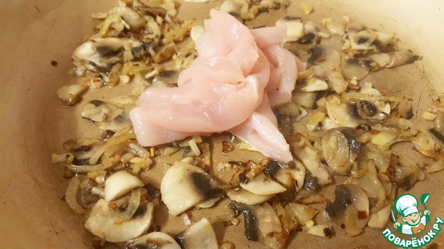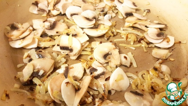 Добавить шампиньоны, обжарить их минут 3-5 -