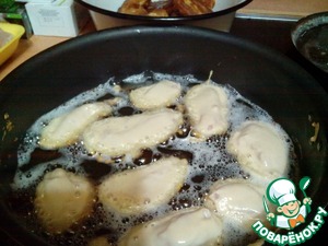 Выкладываем в горячее масло и обжариваем до золотистой корочки. Во время жарки кляр сильно увеличится в размере. Я обжариваю по минуте с каждой стороны. |