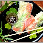 Есть такая интересная разновидность как спринг-роллы. Это тонкие, нежные рулетики из рисовой бумаги с начинкой из свежих овощей. Такое блюдо наиболее полезное и диетическое, ведь рисовая бумага содержит мало калорий. Бумагу предварительно необходимо размочить в воде, она станет мягкой и прозрачной, затем в нее надо быстро навернуть заполнитель и подавать на стол. Подавать такие роллы нужно с соевым соусом.
