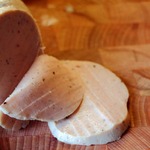 [+5]Солил трое суток в холодильнике, финальное смешивание с водой делал обычным погружным блендером в стеклянной миске. Думал, блендер сдохнет, хоть новый, более мощный куплю, ан нет! Сильно нагрелся, но выдердал, придется добивать его дальше. Консистенция готовой колбасы плотная, без ощущения "туалетной бумаги" в структуре, которое присутствует даже в самых дорогих сортах. Специи я брал в горошках и растолок в ступке, поэтому на срезе видны черные точки. В следующий раз, наверное, надо воспользоваться кофемолкой, т.к. покупные молотые специи я не признаю.