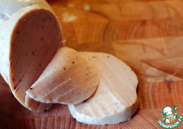 Куриная вареная колбаса без крахмала и желатина. Попытка сделать колбасу со вкусом классической вареной колбасы из курятины.