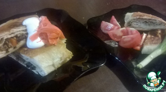 Чтобы не путать постную и непостную шаурму, я сделала их разной формы: постная - прямоугольная, непостная - квадратная -