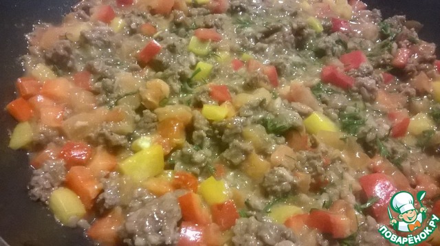 Добавить к луковой обжарке. Тушить 5 минут. -