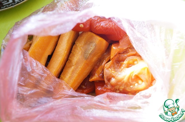 Готовые овощи переложить в пакет и завязать его, дать остыть.