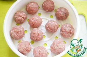 Сформировать из готового фарша небольшие фрикадельки, примерно, одинакового размера.