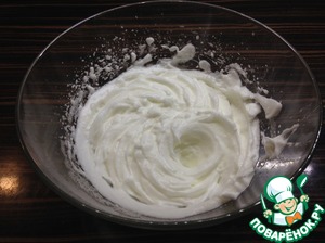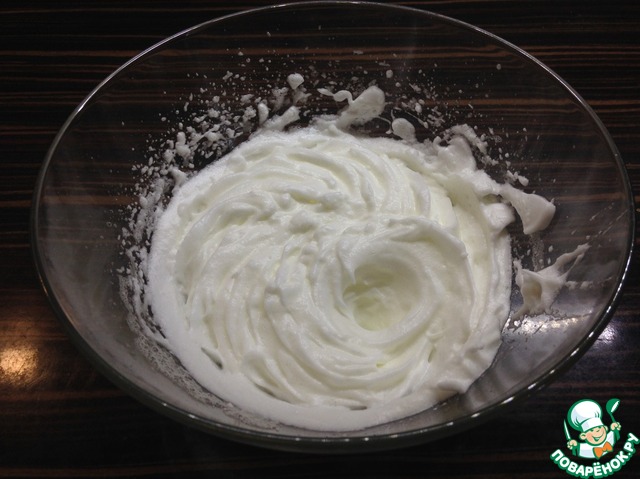 В отдельной миске взбиваем белки до "твёрдых пиков".