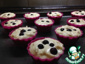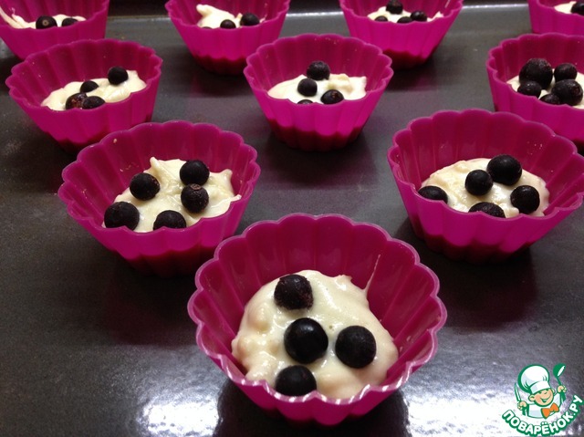 Поверх ягод выкладываем остальное тесто. Формочки можно заполнять до краёв, так как это тесто не очень сильно поднимается.